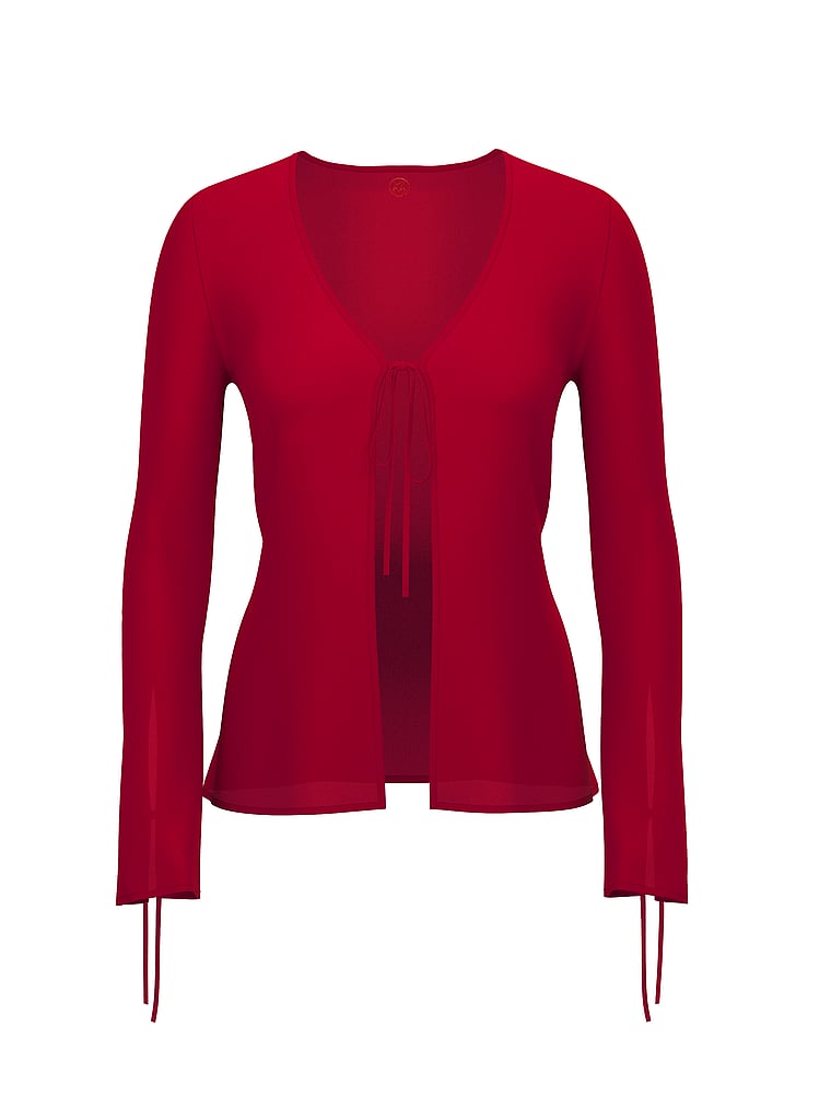 Light as air and totally on-trend, this near-sheer, tie-front style is destined to be a warm-weather favorite, especially when paired with the chic matching pieces.